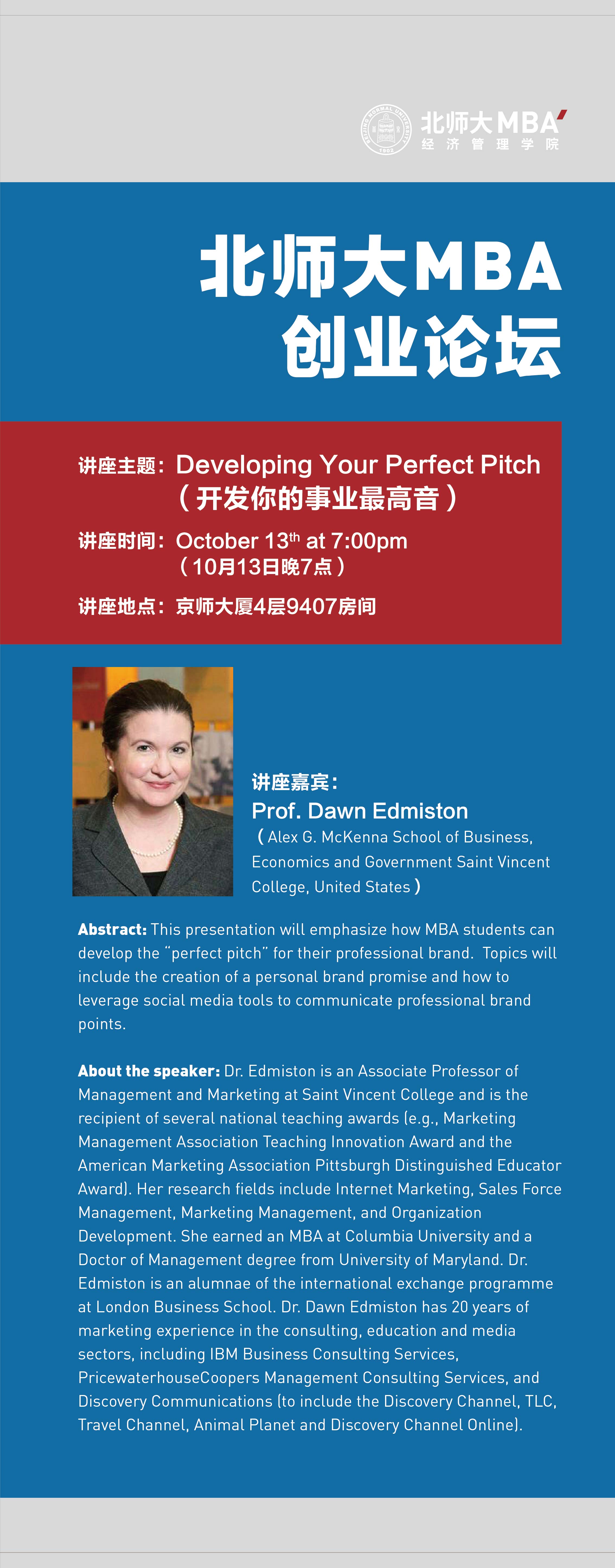 讲座主题:Developing Your Perfect Pitch (开发你的事业最高音)