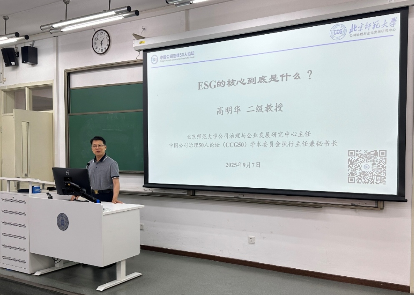 在“明师微课”环节,高明华教授以《ESG的核心到底是什么?》为题展开深度剖析。他开宗明义指出当前ESG认知存在显著误区,即普遍“重环境(E)、社会责任(S)而轻治理(G)”。通过详实案例与数据,高教授揭示了ESG概念被过度追捧甚至出现“漂绿”造假的根源,以及“治理”(Governance)对企业可持续发展的核心作用。他系统梳理了公司治理理论脉络,指出广义公司治理天然涵盖社会责任与环境保护要求,并特别强调“公司治理的本质是契约与合规”,是构成ESG体系的基石和驱动力。高明华教授现场还分享了其团队在ESG评价体系中的研究成果。整场讲座逻辑缜密、观点犀利,充分展现学院在公司治理领域的前沿洞察与学术底蕴,赢得考生高度共鸣。