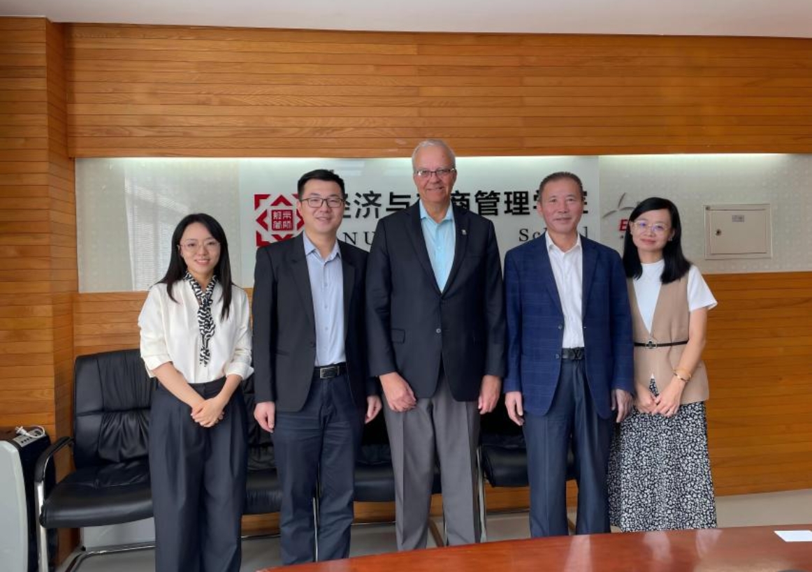 2025年9月22日,美国杜兰大学弗里曼商学院(Freeman School of Business, TulaneUniveristy)院长Paulo Goes一行到访北京师范大学经济与工商管理学院。经管学院院长戚聿东会见了来宾,副院长胡聪慧、审计处副处长、MPAcc项目主任杨丹、国际办公室项目主管尚怡宏参与了会见。