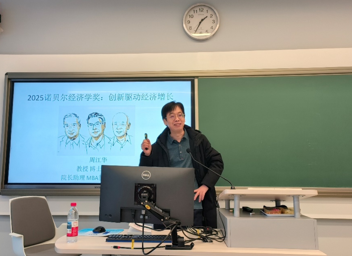 在“明师微课”环节,周江华教授围绕2025年诺贝尔经济学奖得主菲利普·阿吉翁的研究成果,系统阐述了“创造性破坏”作为经济增长核心动力的理论源流、运行逻辑与现实影响。他结合企业兴衰、产业迭代和国际案例,指出创新在推动生产力提升和社会流动中的关键作用,同时也分析了其带来的结构性失业与行业阵痛。周教授还结合人工智能等新技术趋势,探讨了数字化时代创新破坏加速、垄断风险加剧等新特征,并强调管理创新与制度保障在平衡创造与破坏关系中的重要意义。课程内容兼具理论深度与现实启发性,引导考生深入思考创新驱动发展中的个人成长与组织策略。