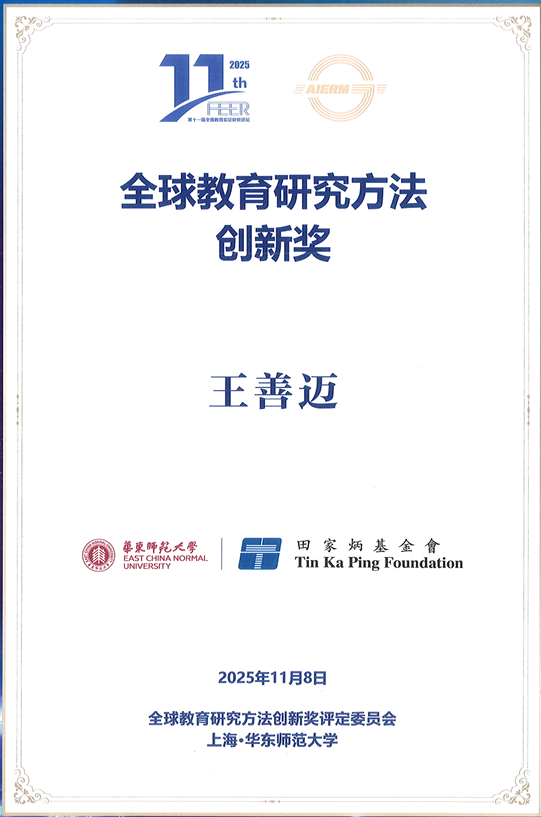 2025年11月8日,由华东师范大学主办的第十一届全国教育实证研究论坛在上海隆重举行第二届“全球教育研究方法创新奖”颁奖典礼,我院荣休教授王善迈先生荣获这一殊荣。颁奖词评价王善迈教授,“建立并实践了一套以问题为导向、实证为基础、制度为背景的教育经济学方法体系,不仅推动了中国教育经济学和教育政策分析的科学化发展,也为世界特别是发展中国家的教育政策研究提供了方法论参考。”